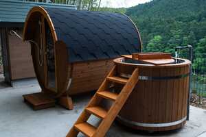 RVパーク s-craft では、バレルサウナやシャワー、炊事場など、滞在を快適にする共用設備をご用意しています。