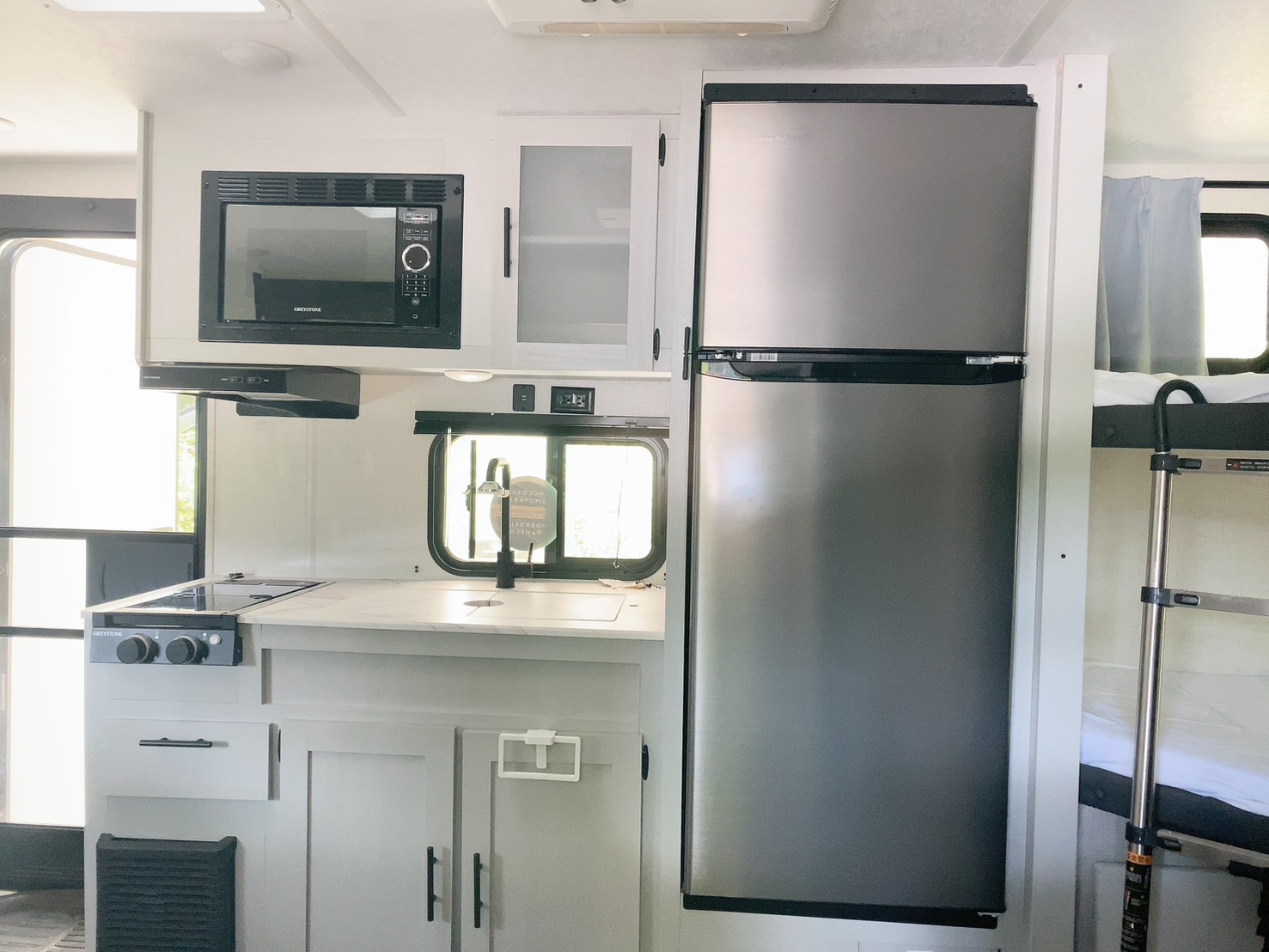アウトドア気分はそのままに、雨の日や冬でも快適に過ごせる本格トレーラーハウスです。